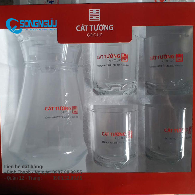 Bộ bình ly thủy tinh bao gồm các mẫu từ nhiều thương hiệu của Indonesia, Union Thái Lan, Ocean Thái Lan, Luminarc. Bộ bình ly thủy tinh mục này phù hợp với nhiều mức ngân sách khác nhau. Nếu làm quà tặng khuyến mãi, khách hàng có thể chọn in hoặc khắc nội dung, logo, thương hiệu công ty lên sản phẩm.