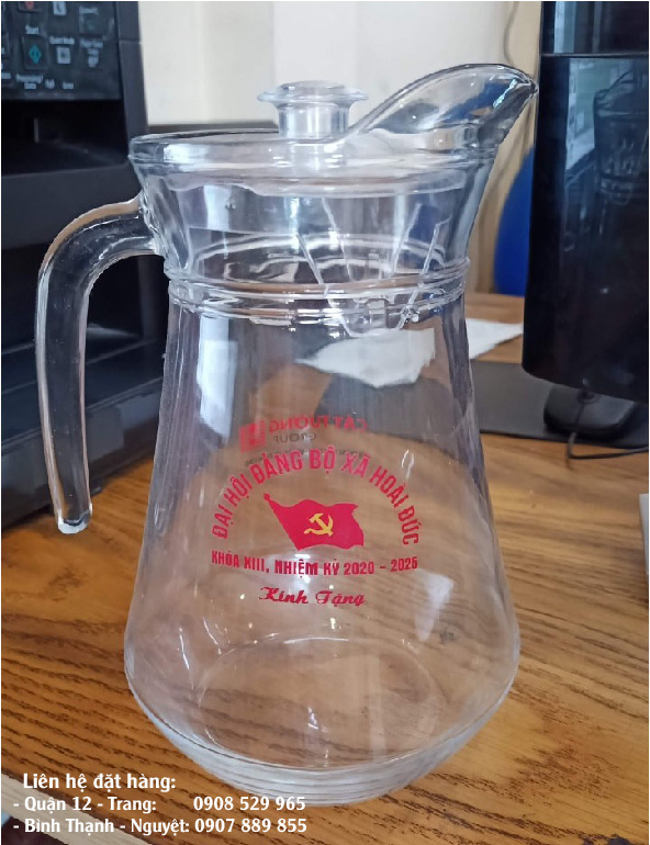In logo công ty lên bình thủy tinh. Dòng sản phẩm này được nhiều khách hàng lựa chọn. In logo công ty lên bình thủy tinh phù hợp với đối tượng là những người trẻ nên thường được các quán cà phê, trà sữa, các quán đồ ăn vặt hay Khách hàng là công ty thường lựa chọn để in logo, thương hiệu lên sản phẩm để Quảng bá thương hiệu hoặc tri ân khách hàng. Sản phẩm này được biết đến nhiều thương hiệu của Indonesia, Ocean Thái Lan hay Luminarc.