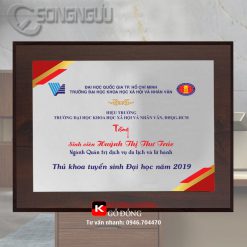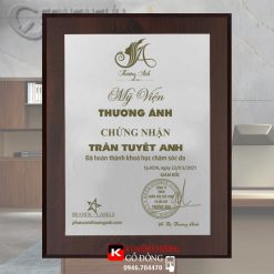 Bảng chứng nhận tốt nghiệp hiện đại, kỷ niệm chương gỗ đồng vinh danh làm từ khung gỗ, kim loại. Nội dung theo thiết kế của khách hàng. Dòng sản phẩm phù hợp vinh danh, làm quà tặng quảng cáo cho đại lý, khách hàng thân thiết. Bảng chứng nhận tốt nghiệp hiện đại với mẫu mã rất đa dạng, kích thước riêng theo yêu cầu của khách hàng.