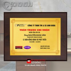 Công ty TNHH Sản xuất Thương mại Song Ngưu tại Tp.HCM thiết kế, sản xuất trực tiếp các loại sản phẩm: Bảng vinh danh cao cấp, Kỷ niệm chương gỗ đồng, kỷ niệm chương thủy tinh, kỷ niệm chương pha lê, cúp pha lê.