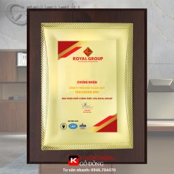 Bảng vàng chứng nhận nhà phân phối, kỷ niệm chương gỗ đồng vinh danh làm từ khung gỗ, kim loại. Nội dung theo thiết kế của khách hàng. Dòng sản phẩm phù hợp vinh danh, làm quà tặng quảng cáo cho đại lý, khách hàng thân thiết. Bảng vàng chứng nhận nhà phân phối với mẫu mã rất đa dạng, kích thước riêng theo yêu cầu của khách hàng.