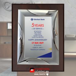Bảng vinh danh bạch kim, kỷ niệm chương gỗ đồng tri ân được làm từ khung gỗ, kim loại. Nội dung theo thiết kế của khách hàng. Dòng sản phẩm phù hợp tặng vinh danh đối tác, nhân viên xuất sắc. Bảng vinh danh bạch kim với mẫu mã rất đa dạng, kích thước riêng theo yêu cầu của khách hàng.