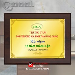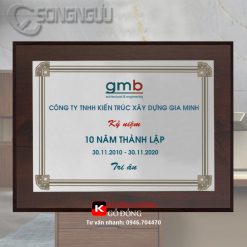 Biểu trưng kỷ niệm ngày thành lập doanh nghiệp, kỷ niệm chương gỗ đồng làm từ khung gỗ, kim loại. Nội dung theo thiết kế của khách hàng. Dòng sản phẩm phù hợp vinh danh, làm quà tặng quảng cáo cho đại lý, khách hàng thân thiết. Biểu trưng kỷ niệm ngày thành lập doanh nghiệp với mẫu mã rất đa dạng, kích thước riêng theo yêu cầu của khách hàng.