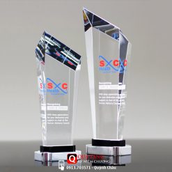 Cúp trao thưởng nhân viên, cúp tôn vinh cao cấp, cúp pha lê vinh danh được làm từ pha lê trong, phối thêm các màu khác nhau. Cúp có đế màu đen cao 24cm dùng để vinh danh, lưu niệm, có kích thước, mẫu mã rất đa dạng và nội dung khắc hoặc in trực tiếp theo yêu cầu riêng.
