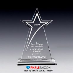 Cúp pha lê ngôi sao, mẫu cúp khen thưởng, cúp tôn vinh cao cấp được làm từ pha lê trong, phối thêm các màu khác theo yêu cầu. Cúp pha lê ngôi sao có kích thước, mẫu mã rất đa dạng và nội dung khắc hoặc in trực tiếp theo từng sự kiện.