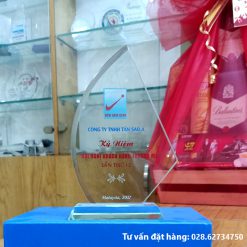 Kỷ niệm chương hình chiếc thuyền cao 18cm được làm từ thủy tinh, phối thêm các màu khác theo yêu cầu, nội dung khắc hoặc in trực tiếp. Kỷ niệm chương hình chiếc thuyền có kích thước, mẫu mã rất đa dạng và nội dung theo yêu cầu riêng.