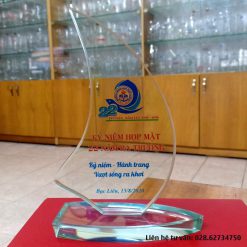 Kỷ niệm chương họp lớp cao 18cm được làm từ thủy tinh, phối thêm các màu khác theo yêu cầu, nội dung khắc hoặc in trực tiếp. Kỷ niệm chương phù hợp dùng trong các dịp hội ngộ, họp lớp, có kích thước, mẫu mã rất đa dạng và nội dung theo yêu cầu riêng.