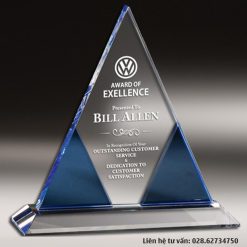 Quà tặng khen thưởng nhân viên, kỷ niệm chương tri ân, biểu trưng tôn vinh cao cấp được làm từ pha lê trong, phối thêm các màu khác theo yêu cầu. Quà tặng khen thưởng nhân viên có kích thước, mẫu mã rất đa dạng và nội dung khắc hoặc in trực tiếp theo từng sự kiện.