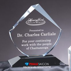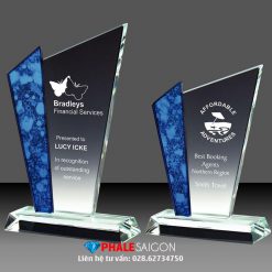 Quà tặng khen thưởng nhân viên, kỷ niệm chương tri ân, biểu trưng tôn vinh cao cấp được làm từ pha lê trong, phối thêm các màu khác nhau. Quà tặng khen thưởng nhân viên có kích thước, mẫu mã rất đa dạng và nội dung khắc hoặc in trực tiếp theo yêu cầu riêng.