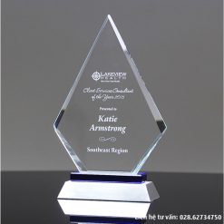 Kỷ niệm chương vinh danh nhân viên cuối năm, quà tặng tri ân, biểu trưng tôn vinh cao cấp được làm từ pha lê trong, phối thêm các màu khác theo yêu cầu, nội dung khắc hoặc in trực tiếp. Kỷ niệm chương pha lê hình tam giác có kích thước, mẫu mã rất đa dạng và nội dung theo yêu cầu riêng.