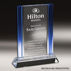 Kỷ niệm chương pha lê vinh danh, quà tặng tri ân, biểu trưng tôn vinh cao cấp được làm từ pha lê trong, phối thêm các màu khác theo yêu cầu. Kỷ niệm chương có kích thước cao 19cm, mẫu mã rất đa dạng và nội dung khắc hoặc in trực tiếp theo yêu cầu riêng.