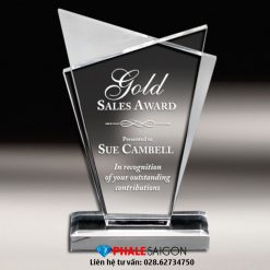 Kỷ niệm chương khen thưởng nhân viên xuất sắc, biểu trưng tôn vinh cao cấp, quà tặng vinh danh được làm từ pha lê trong, có thể phối thêm pha lê màu khác nhau làm tôn thêm sự tinh tế, sang trọng. Kỷ niệm chương pha lê khen thưởng có kích thước, mẫu mã rất đa dạng và nội dung in khắc theo yêu cầu riêng.